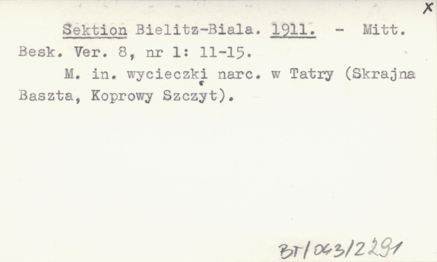 Mitteilungen des Beskidenvereines, 8, nr 1: 11-15. M. in. wycieczki narciarskie w Tatry (Skrajna Baszta, Koprowy Szczyt).