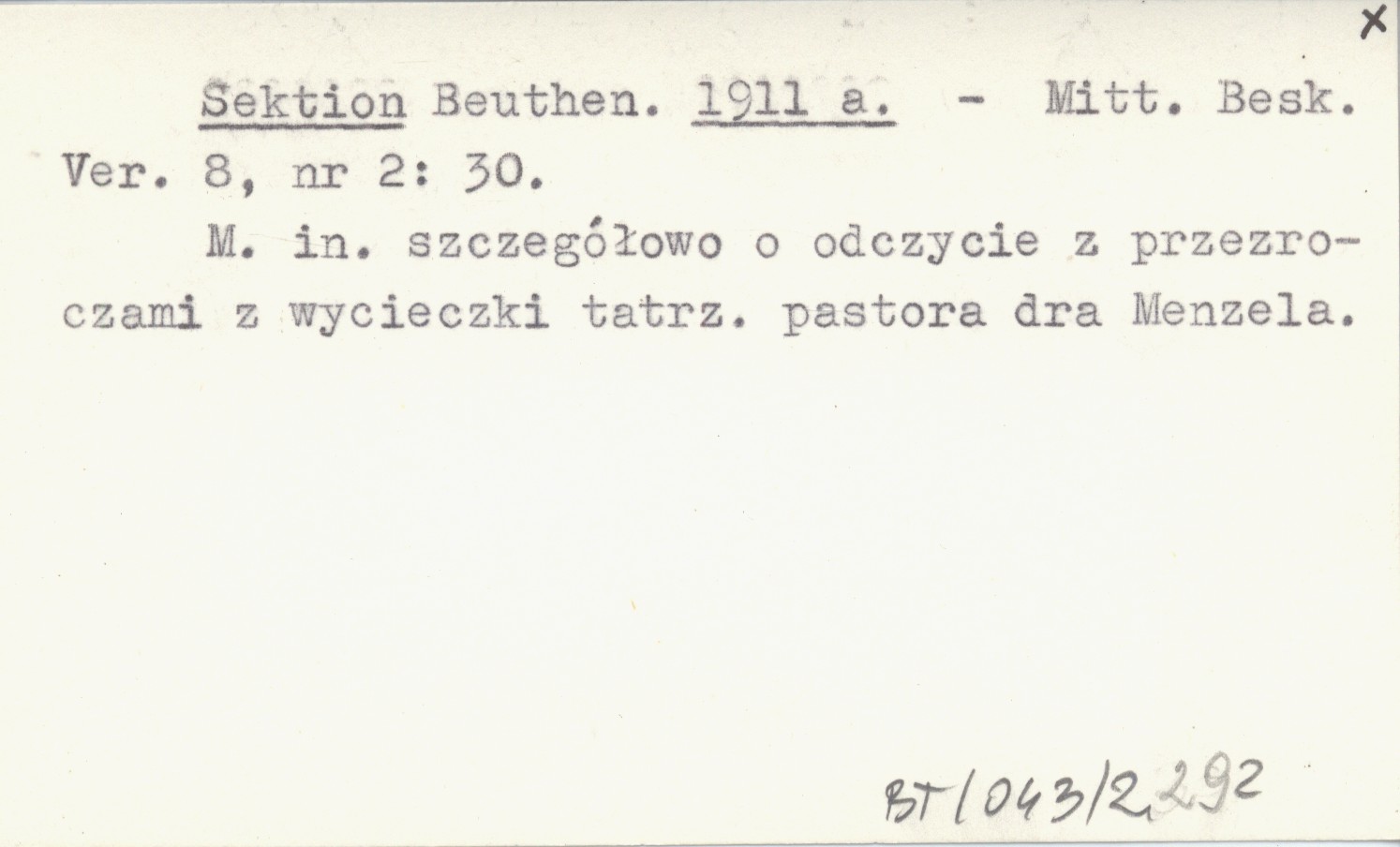 Mitteilungen des Beskidenvereines, 8, nr 2: 30. M. in. szczegółowo o odczycie z przezroczami z wycieczki tatrzańskiej pastora dra Menzela.