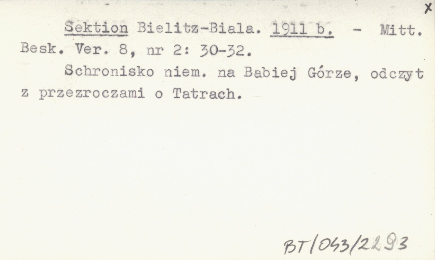 Mitteilungen des Beskidenvereines, 8, nr 2: 30-32. Schronisko niemieckie na Babiej Górze, odczyt z przezroczami o Tatrach.