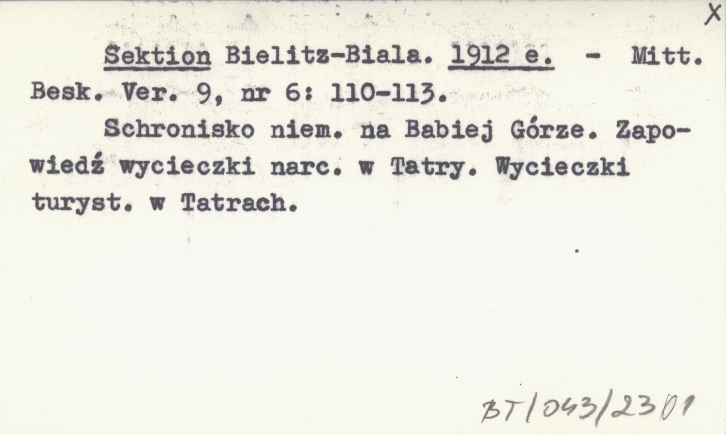 Mitteilungen des Beskidenvereines, 9, nr 6: 110-113. Schronisko niemieckie na Babiej Górze. Zapowiedź wycieczki narciarskiej w Tatry. Wycieczki turystyczne w Tatrach.