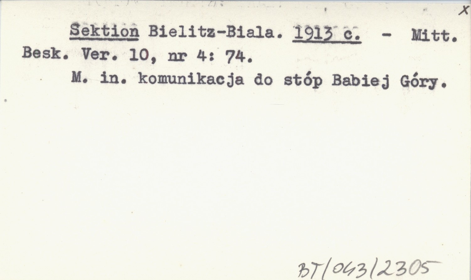 Mitteilungen des Beskidenvereines, 10, nr 4: 74. M. in. komunikacja do stóp Babiej Góry.