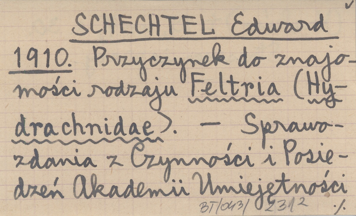 SCHECHTEL Edward 1910 Przyczynek do znajomości rodzaju Feltria (Hydrachnidae).