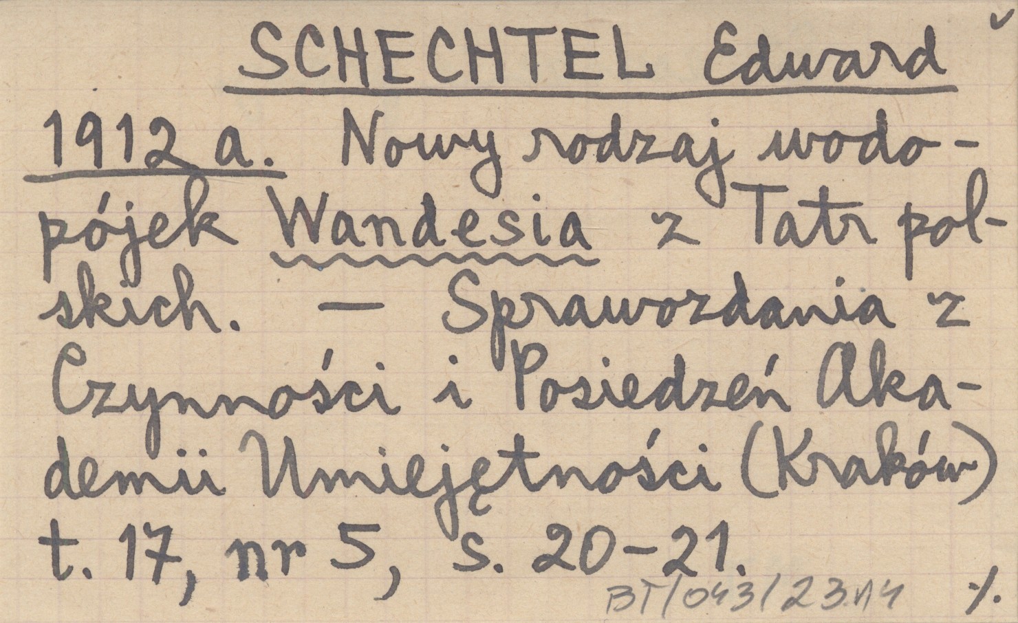 SCHECHTEL Edward 1912 a Nowy rodzaj wodopójek Wandesia z Tatr polskich.