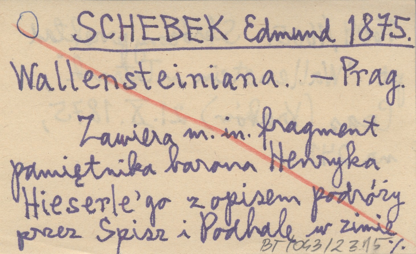 Prag , Zawiera m. in. fragment pamiętnika barona Henryka Hieserle'go z opsiem podróży przez Spisz i Podhale w zimie 1604/1605. Skrócony przekład pt. "Wallentein w Tatrach", Czas (Kraków) 21.X.1875, nr 241.