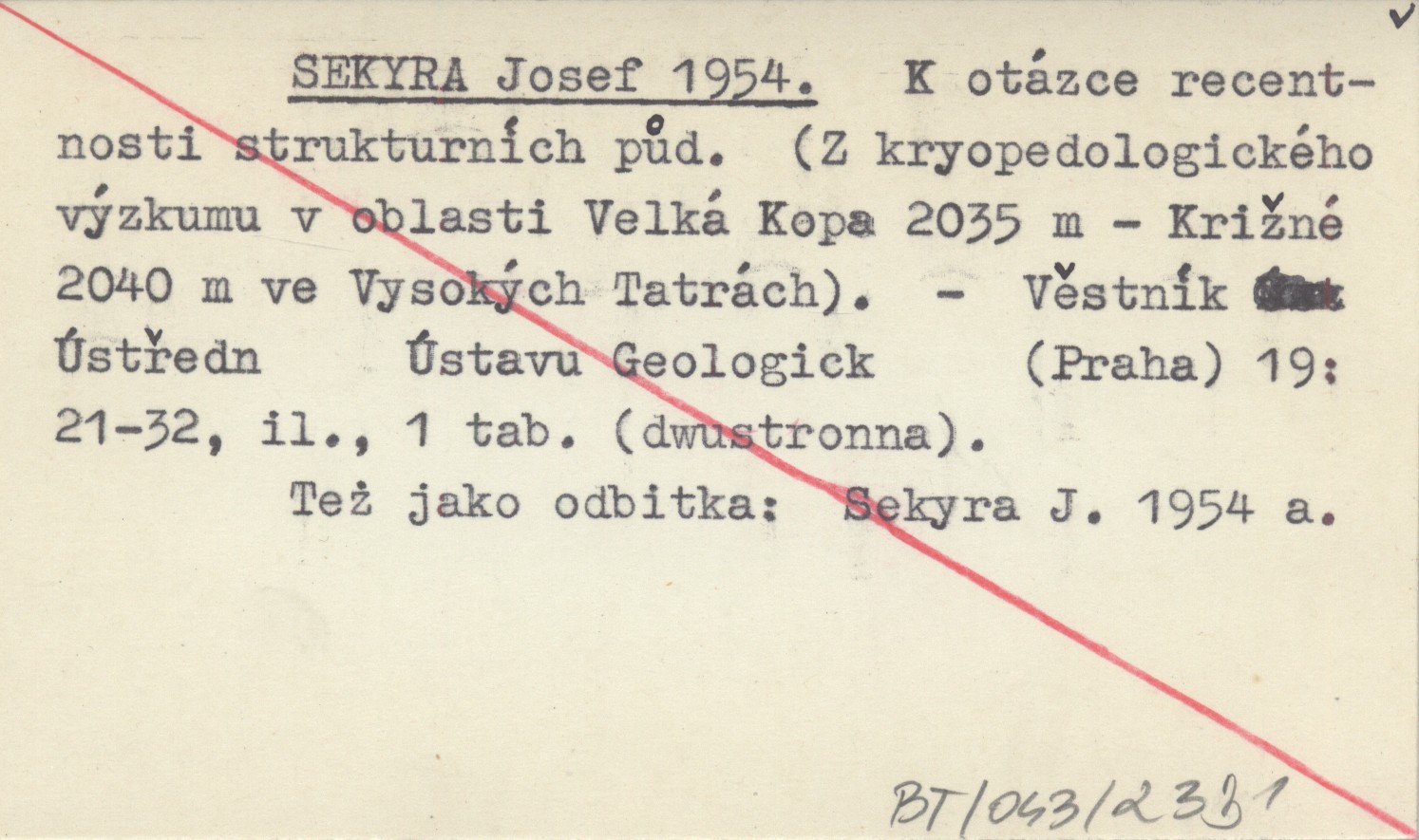 SEKYRA Josef 1954 K otázce recentnosti strukturních půd. (Z kryopedologického výzkumu v oblasti Velká Kopa 2035 m - Kriľné 2040 m ve Vysokých Tatrách).