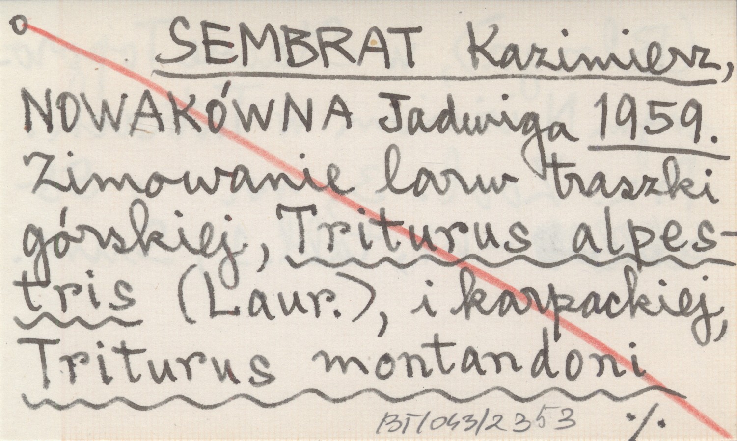SEMBRAT Kazimierz NOWAKÓWNA, Jadwiga. ; 1959 Zimowanie larw traszki górskiej, Triturus alpestris (Laur.), i karpackiej, Ttiturus montadoni (Blngr.), w Stawie Toporowym Niżnim w Tatrach.