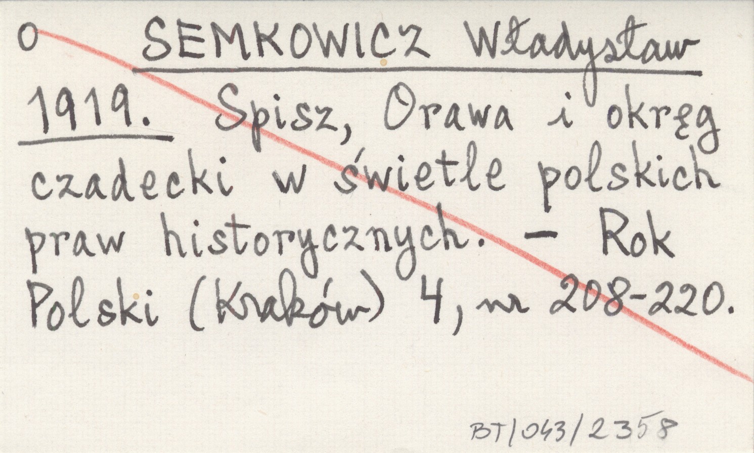 SEMKOWICZ Władysław 1919 Spisz, Orawa i okręg czadecki w świetle polskich praw historycznych.