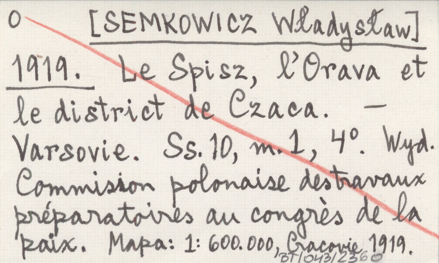 Commission polonaise destravaux préparatoires au conrés de la paix, Varsovie , 10 s., 1 m., 4°. Mapa: 1: 600.000, Cracovie 1919.