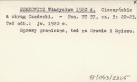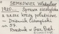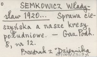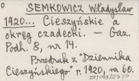 SEMKOWICZ Władysław 1920 d Cieszyńskie a okrąg Czadecki.