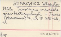 SEMKOWICZ Władysław 1922 Jaworzyna w świetle praw historycznych.