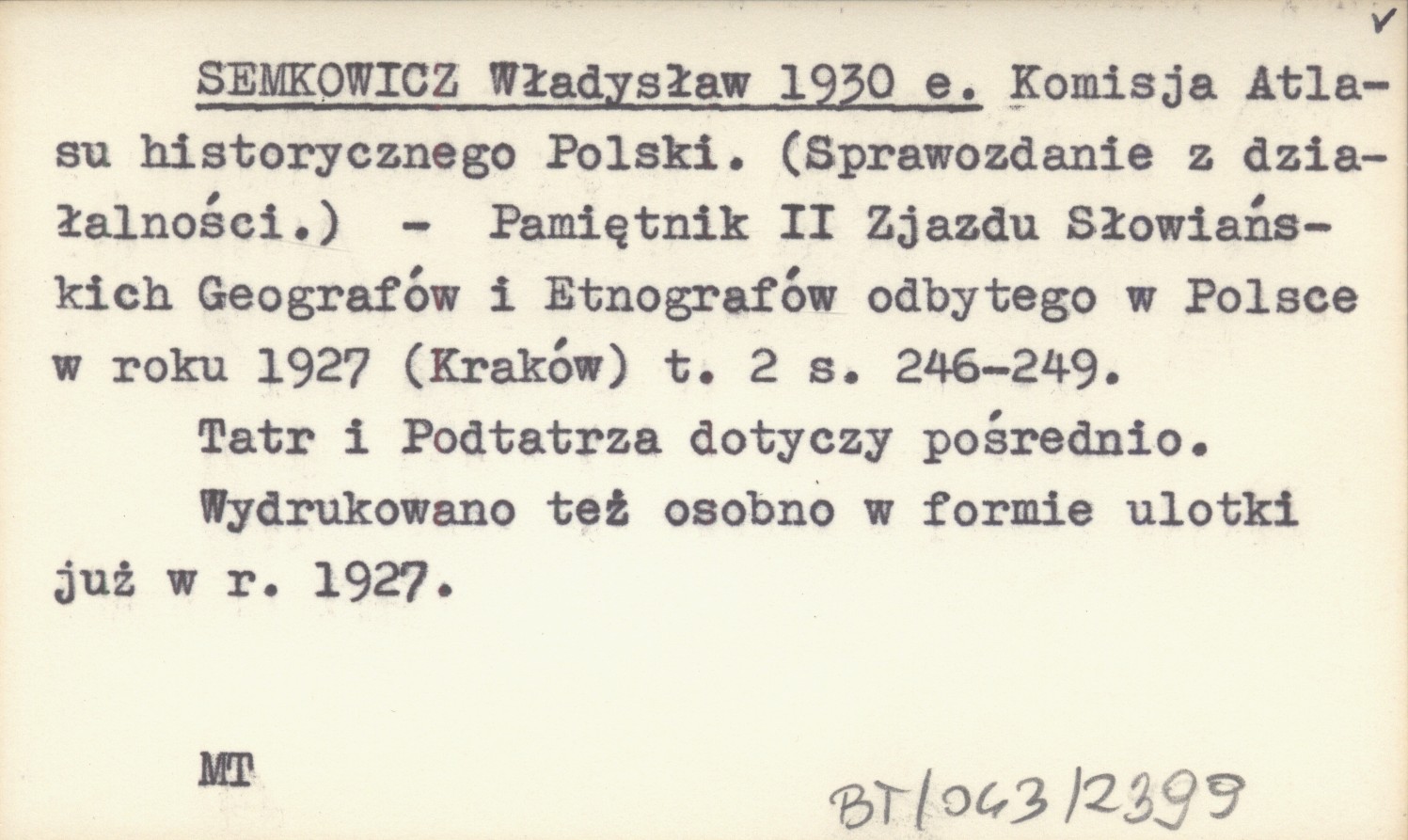 Pamiętnik II Zjazdu Słowiańskich Geografów i Etnografów odbytego w Polsce w roku 1927 (Kraków) , T. 2: 246-249. Tatr i Podtatrza dotyczy pośrednio. Wydrukowano też osobno w formie ulotki już w. r. 1927.