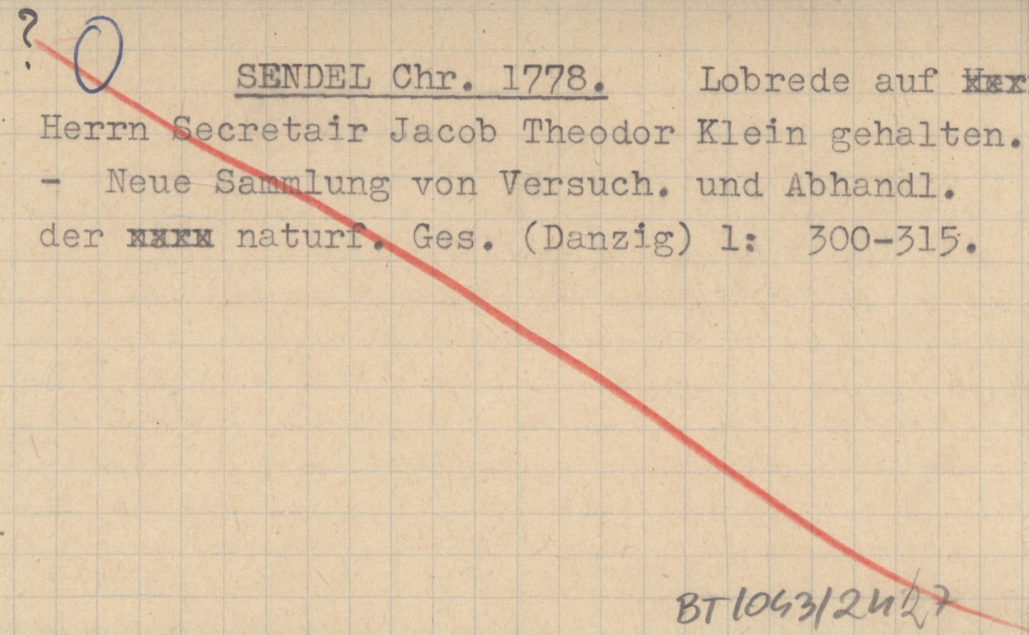 SENDEL Chr. 1778 Lobrede auf Herrn Secretair Jacob Theodor Klein gehalten.