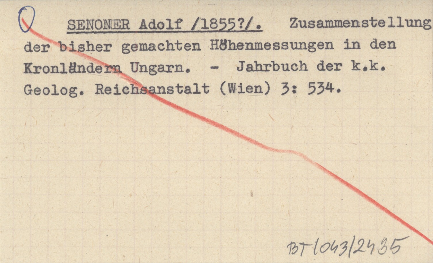 SENONER Adolf (1855?) Zusammenstellung der bisher gemachten Höhenmessungen in den Kronländern Ungarn.