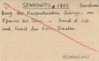 SENNOWITZ 1805 Beschreibung des Karpathisehn Gebirges von Epevies bis Tokai.