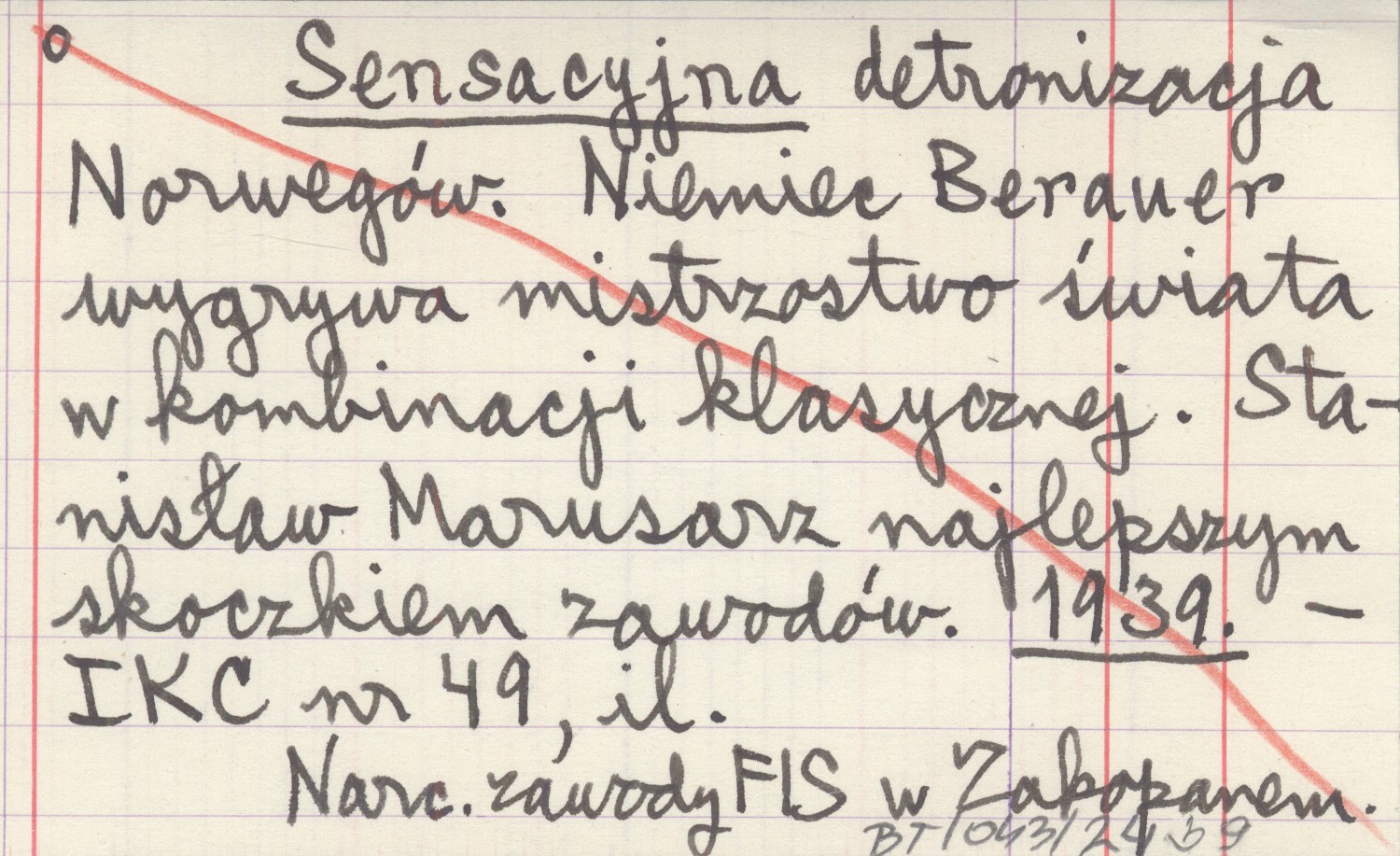 Sensacyjna detronizacja Norwegów. Niemiec Berauer wygrywa mistrzostwo świata w kombinacji klasycznej. Stanisław Marusarz najlepszym skoczkiem zawodów. 1939