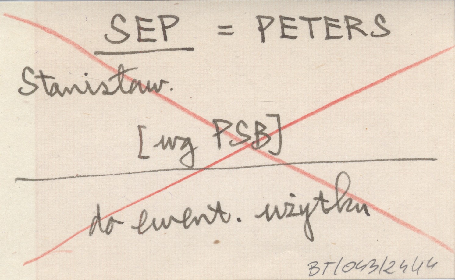 SEP PETERS Stanisław [Wg PSB]. Do ewentualnego użytku.