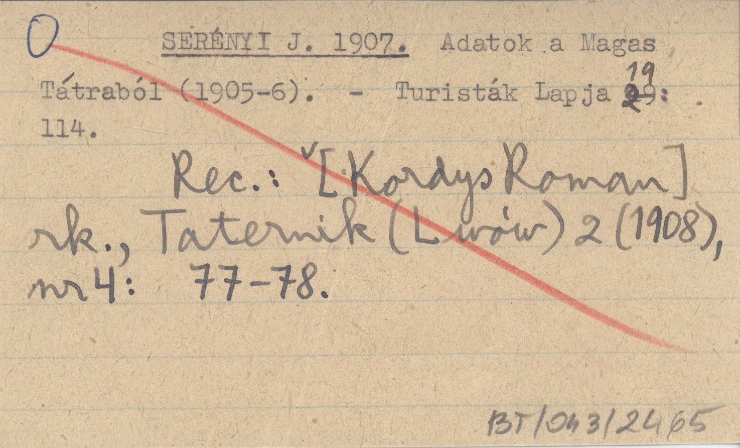 REC: [Kordys Roman] rk., Taternik (Lwów) 2 (1908), nr 4: 77-78.