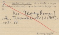 SERÉNYI J. 1907 Adatok a Magas Tátraból (1905-6).
