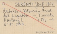 SERÉNYI J. 1907 A Magas-Tátrában au 1907 évben véghezvitt új turák.