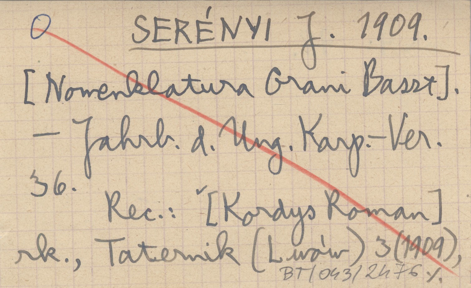 Jahrbuch des Ungarischen Karpathen-Vereines, 36. REC: [Kordys Roman] rk., Taternik (Lwów) 3 (1909), nr 4: 98.