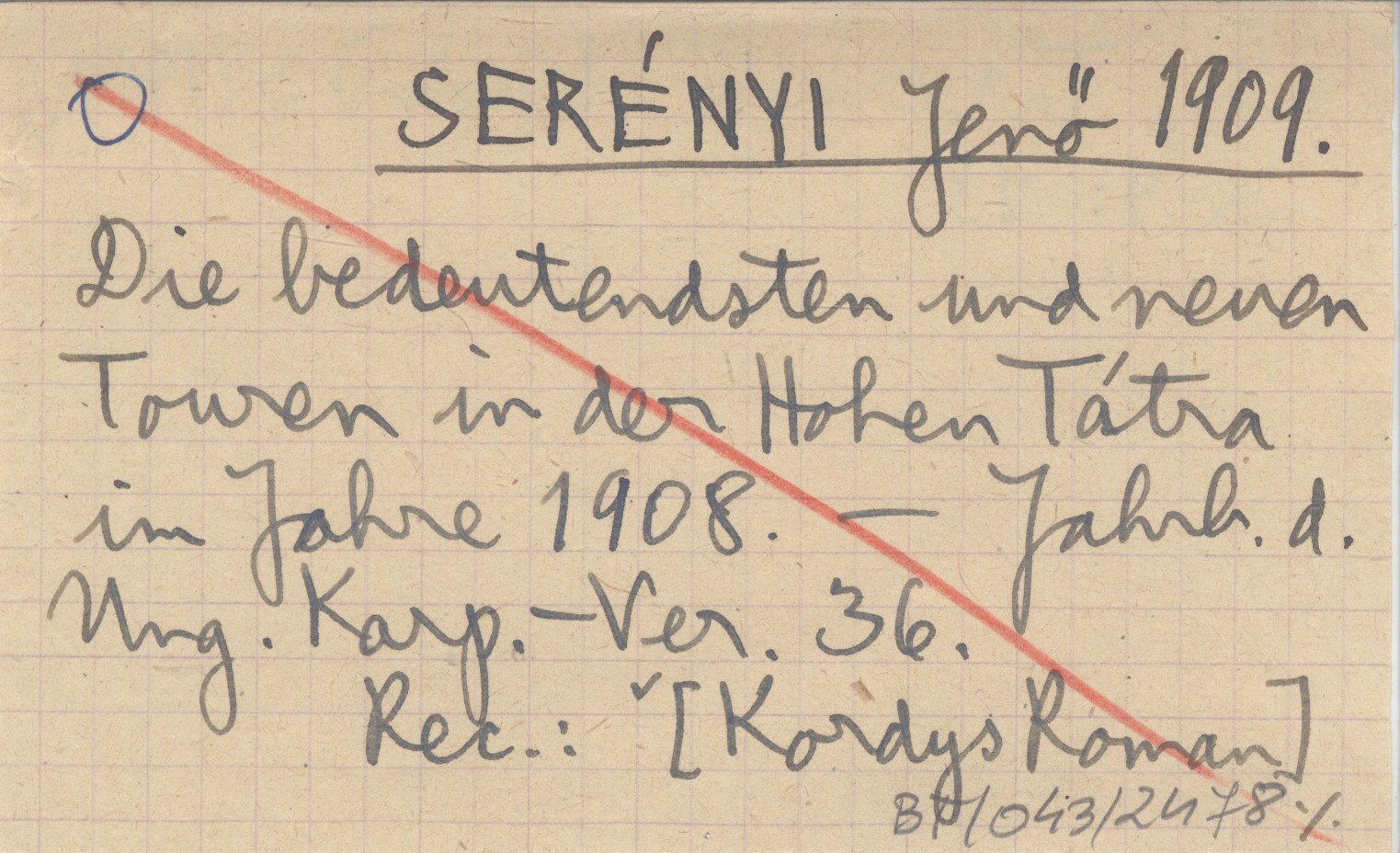 SERÉNYI Jenő 1909 Die bedeutendsten und neuen Touren in der Hohen Tátra im Jahre 1908.