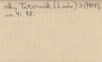 Jahrbuch des Ungarischen Karpathen-Vereines, 36. REC: [Kordys Roman] rk., Taternik (Lwów) 3 (1909), nr 4: 98.