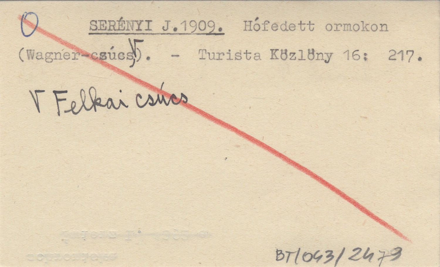 SERÉNYI J. 1909 Hófedett ormokon (Wagner-csúcs, Felkai csúcs).