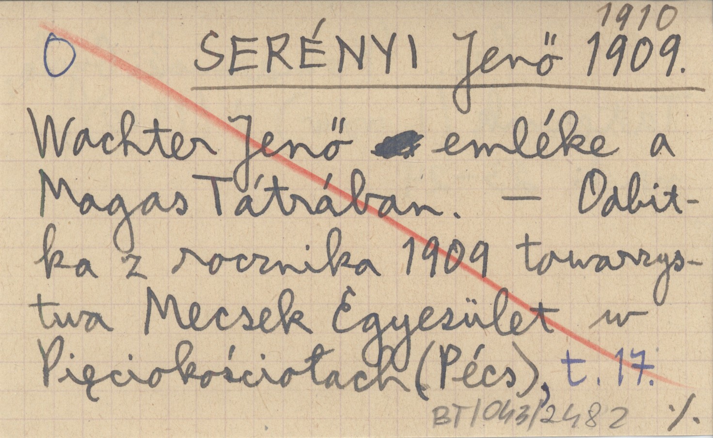 SERÉNYI Jenő 1909, 1910 Wachter Jenő emléke a Magas Tátrában.