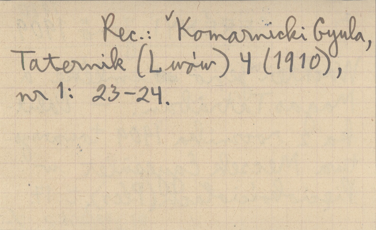 , Odbitka z rocznika 1909 towarzystwa Mecsek Egyesület w Pięciokościołach (Pécs), t. 17. REC: Komarnicki Gyula, Taternik (Lwów) 4 (1910), nr 1: 23-24.