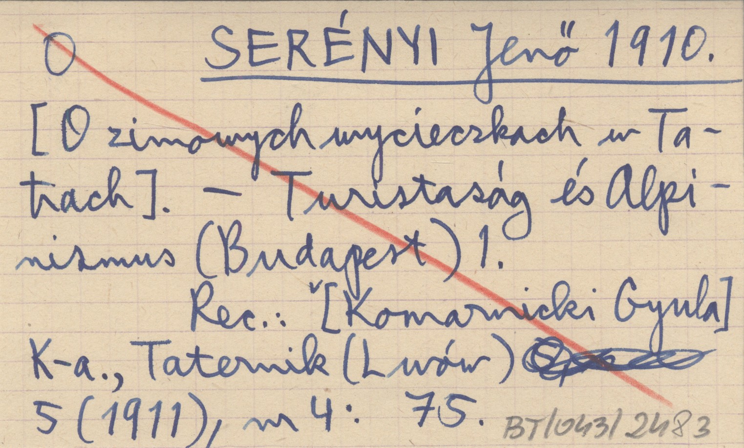 Turistaság és Alpinismus (Budapest) , 1. REC: [Komarnicki Gyula] K-a., Taternik (Lwów) 5 (1911), nr 4: 75.