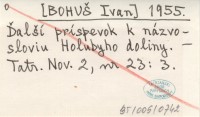 [BOHUŠ Ivan] 1955 Ďalší príspevok k názvosloviu Holubyho doliny.