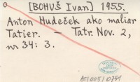 [BOHUŠ Ivan] 1955 Anton Hudeček ako maliar Tatier.