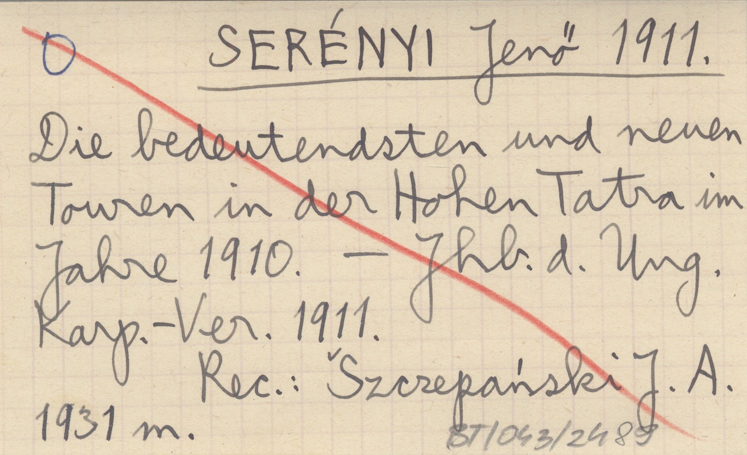 SERÉNYI Jenő 1911 Die bedeutendsten und neuen Touren in der Hohen Tatra im Jahre 1910.