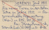 SERÉNYI Jenő 1911 Die bedeutendsten und neuen Touren in der Hohen Tatra im Jahre 1911.