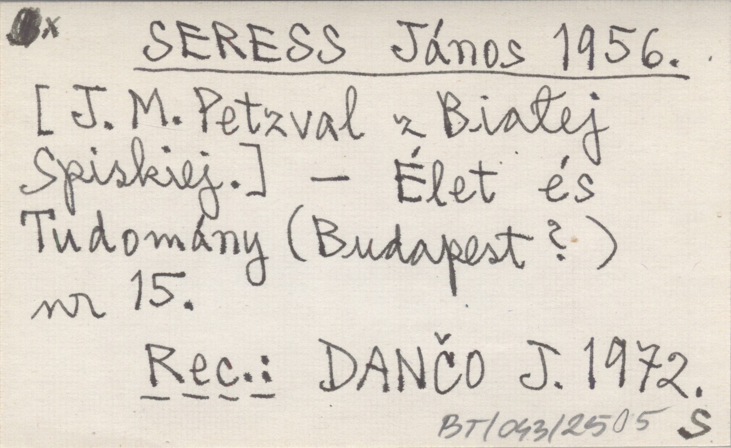 SERESS János 1956 [J. M. Petzval z Białej Spiskiej].
