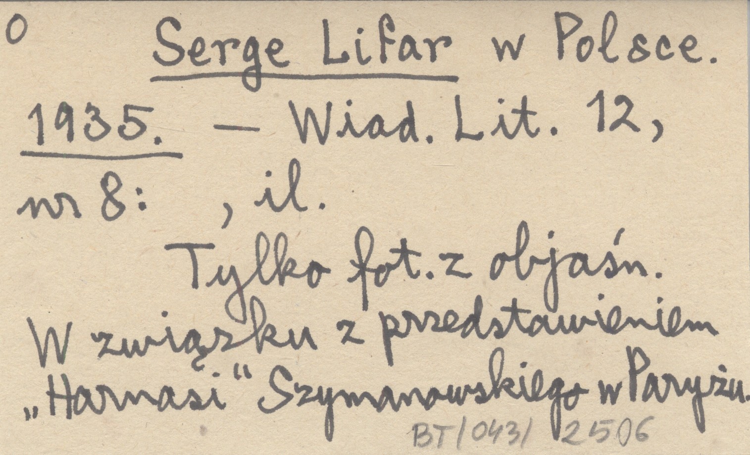 Wiadomości Literackie, 12, nr 8: il. Tylko fotografia z objaśnieniem. W związku z przedstawieniem "Harnasi" Szymanowskiego w Paryżu.