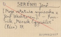 SERÉNYI Jenő [Moja ostatnia wycieczka z Jenő Wachterem].