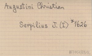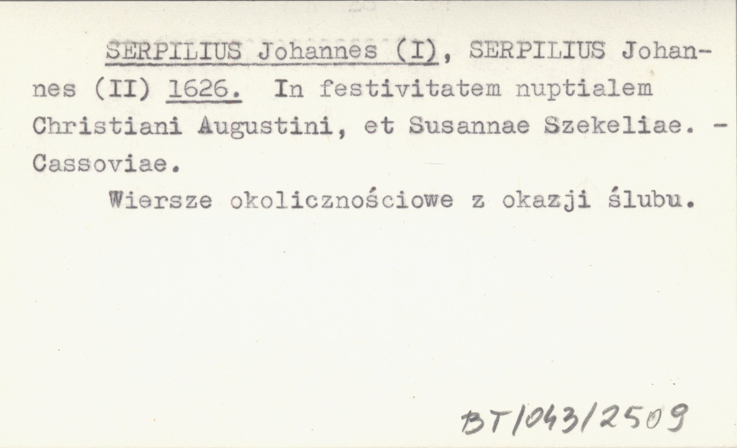 SERPILIUS Johannes (I) SERPILIUS, Johannes (II). ; 1626 In festivitatem nuptialem Christiani Augustini, et Susannae Szekeliae.