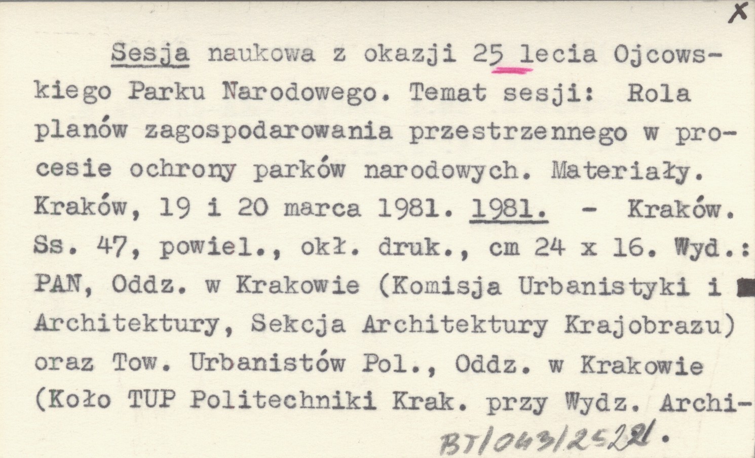 PAN, Oddział w Krakowie (komisja Urbanistyki i Architektury, Sekcja Architektury Krajobrazu) oraz Towarzystwo Urbanistów Polskich, Oddział w Krakowie Kraków , 47 s., powiel., okł., druk., 24x16 cm. Zawiera m. in.: BARANOWSKA-JANOTA M. 1981, PAWŁOWSKA K. 1981.
