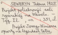SEWERYN Tadeusz 1925 Projekt polichromji sali rycerskiej na Wawelu.