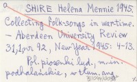 SHIRE Helena Mennie 1945 Collecting folk-songs in war-time.