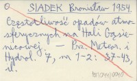 SIADEK Bronisław 1954 Częstotliwość opadów atmosferycznych na Hali Gąsienicowej.