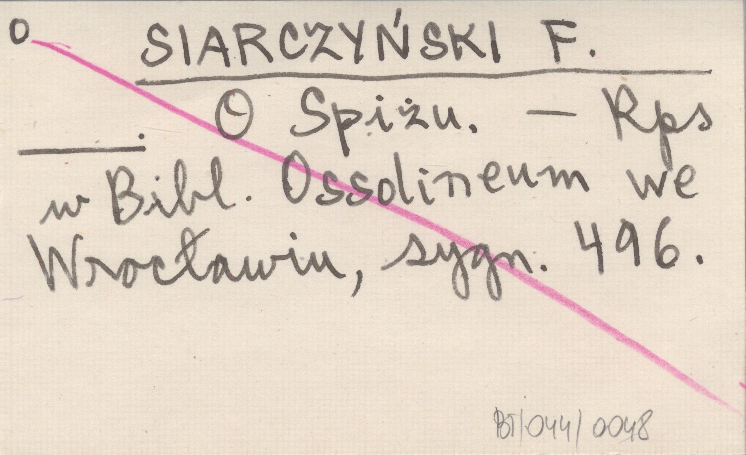 , Rękopis w Bibliotece Ossolineum we Wrocławiu, sygn. 496.