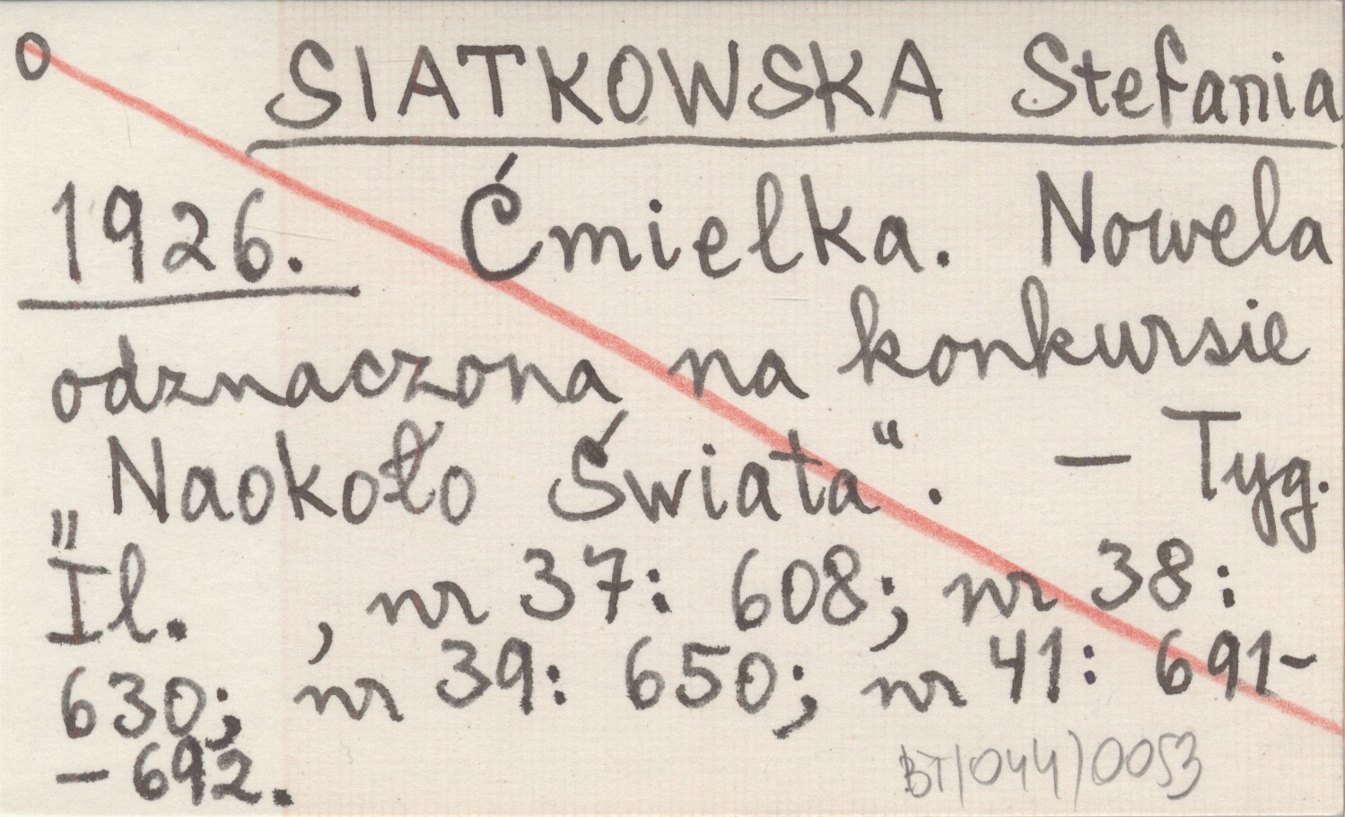 SIATKOWSKA Stefania 1926 Ćmiekla. Nowela odznaczona na konkursie "Naokoło Świata".