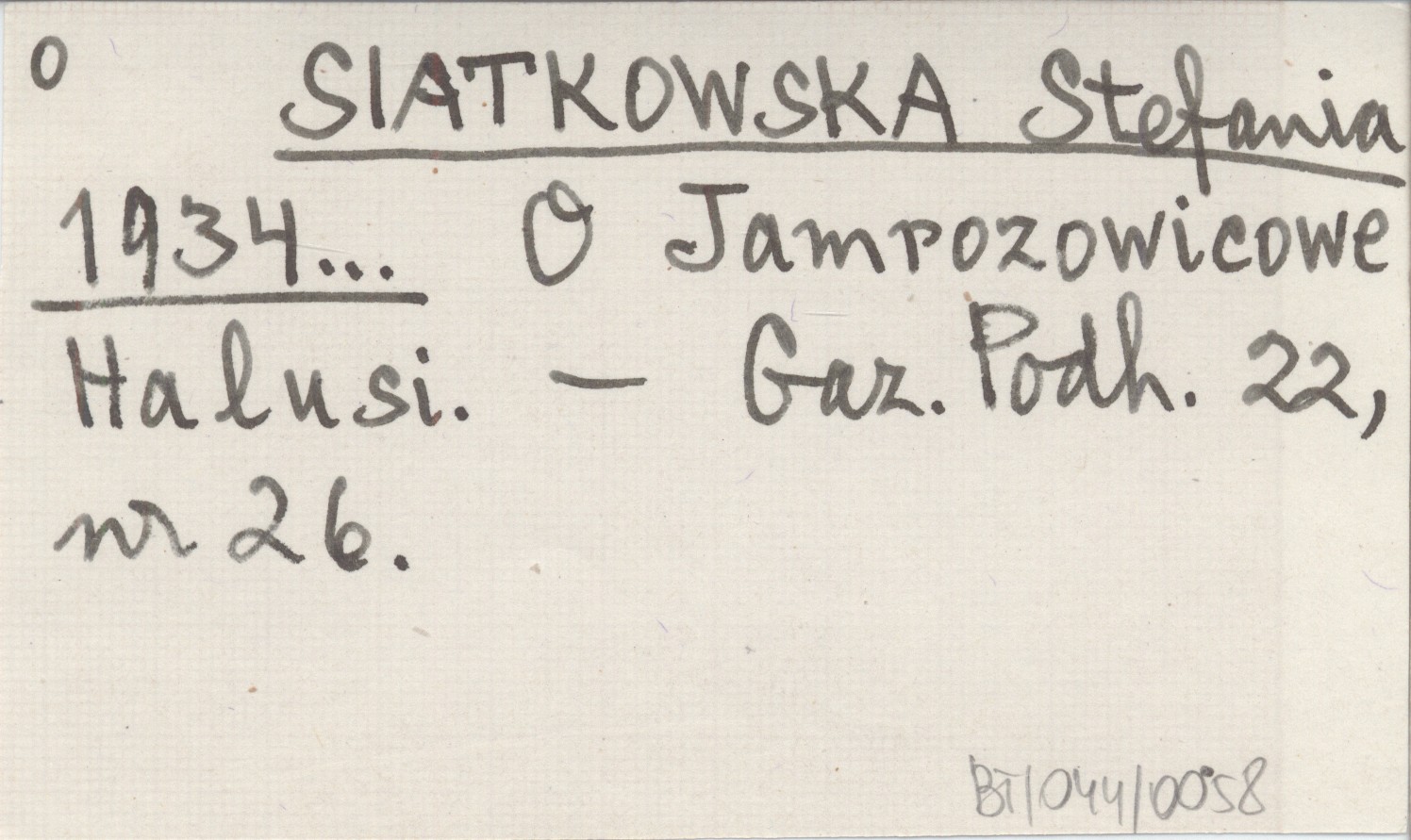 SIATKOWSKA Stefania 1934... O Jamrozowicowe Halusi.