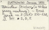 SIATKOWSKI Janusz 1975 Zdzisław Stieber (w 45-lecie pracy naukowej).