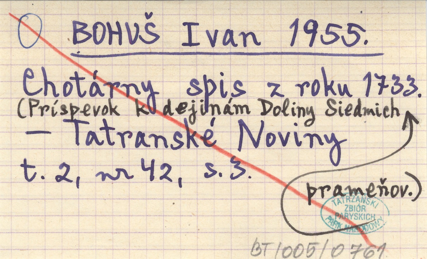 BOHUŠ Ivan 1955 Chotárny spis z roku 1733. (Príspevok k dejinám Doliny Siedmich prameňov.).