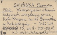 SICIŃSKA Eleonora 1932 Wieczór pieśni i tańców ludowych urządzonych przez Koło Krajozn. im. ks. Damrotha w Kościerzynie.