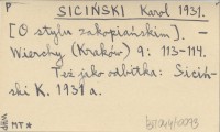 SICIŃSKI Karol 1931 [O stylu zakopiańskim].
