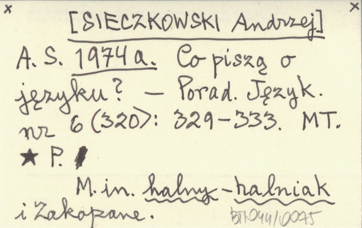 A. S. [SIECZKOWSKI Andrzej] 1974 a Co piszą o języku?